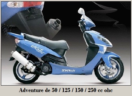 - Adventure (YY150T-12): de 150 cc, 8.0 CV / 8 500 rpm, velocidad 100 km/h.