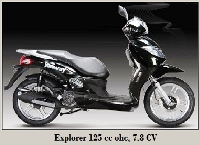 • Explorer (YY125T-8): de 125 cc, 7.8 CV / 8 500 rpm, neumáticos D/T 110 - 80-16", velocidad 90 km/h, tanque 10.5 L y 125 kg de peso