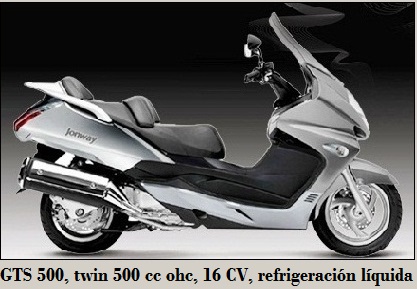• GTS500: bicilíndrico de 500 cc, refrigeración líquida, 16 CV / 7 500 rpm, neumáticos D/T 120 - 80-14" / 130 - 80-14", velocidad 160 km/h, solo arranque eléctrico, batería 12 V / 9 Ah, tanque de 12 L y 160 kg.