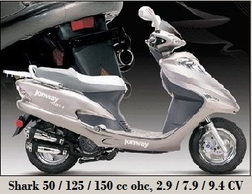 - Shark (YY1250T-3): de 125 cc, 7.7 CV /8 500 rpm, velocidad máxima 90 km/h; resto como la versión anterior.