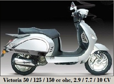 - Victoria (YY125T-29): de 125 cc, 7.7 CV / 8 500 rpm, velocidad 90 km/h; resto como la versión anterior.