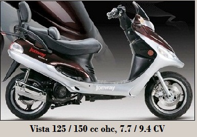 - Vista (YY150T-4): de 150 cc, 9.4 CV / 8 500 rpm y velocidad 100 km/h; resto como la versión anterior.