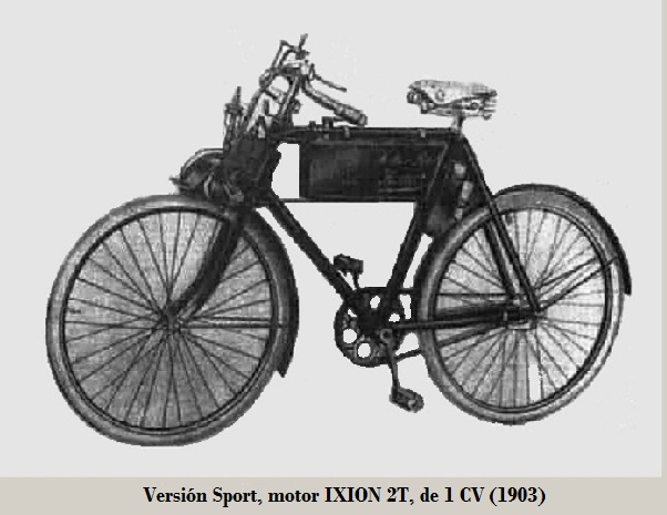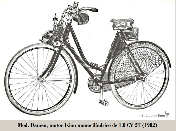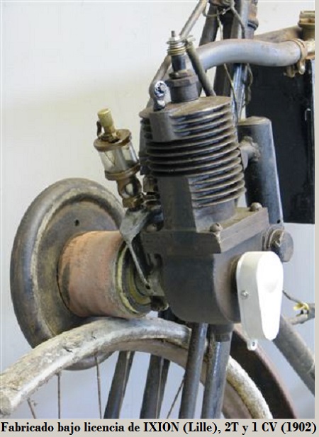 Los motores monocilíndricos iban montados sobre la rueda delantera con transmisión por rodillo de fricción sobre la misma.