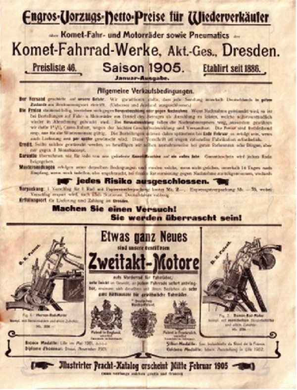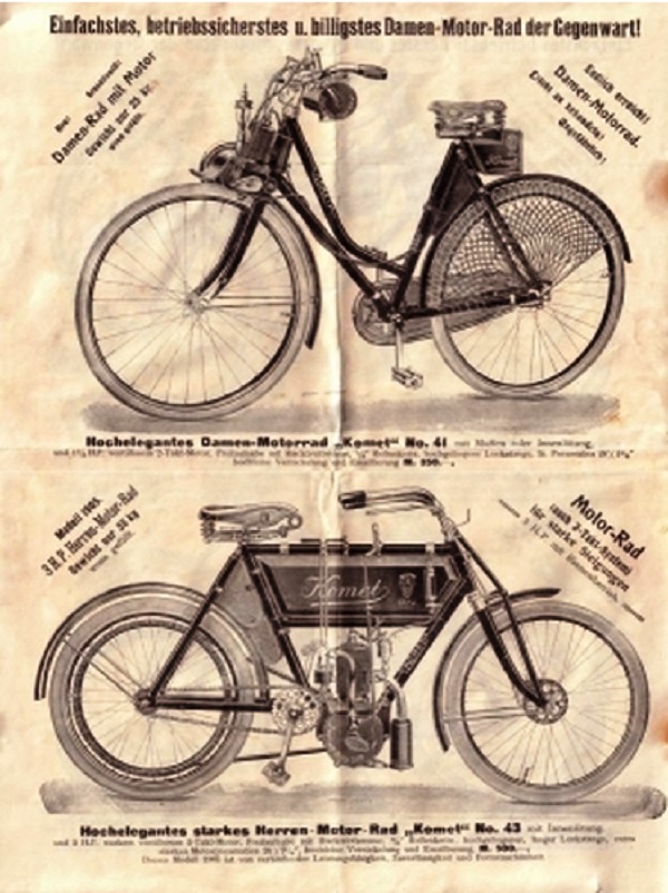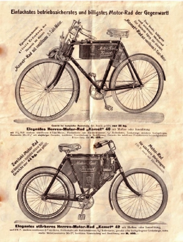 La compañía "Kirschner & Co.", con sede en de Dresden, Sajonia, en sus orígenes fue un fabricante de bicicletas, extendiendo sus actividades a las motocicletas a partir de 1902, como "Komet Fahrradwerke AG", siendo el primer fabricante alemán de motores de 2T, (incluso antes que DKW), con potencias entre 1.0 y los 4.0 CV, que se fabricaban bajo licencia de la firma gala IXION (Lille)
