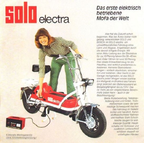 También fabricaron un escúter eléctrico, el Solo Electra, a mediados de la década de los 70.