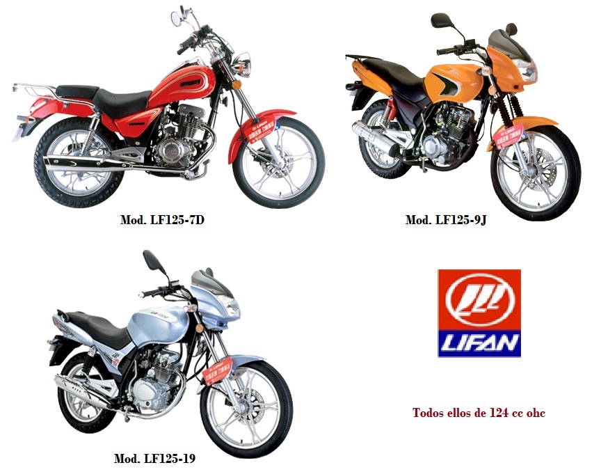 • LF125-19: de 124.5 cc, 10.45 CV, velocidad 90 km/h y 125 kg de peso