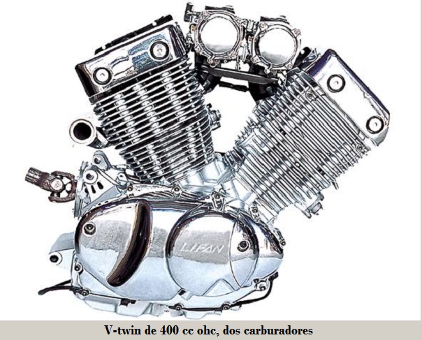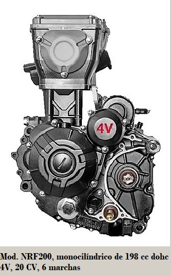 V-twin de 194.4 cc, 14.7 CV, velocidad 100 km/h y 160 kg de peso.