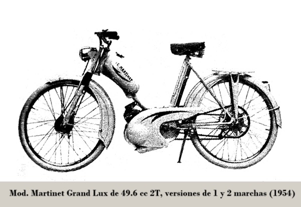 • Martinet Grand Luxe: monocilíndrico de 49.63 cc 2T, versiones de 1 y 2 marchas. 1954