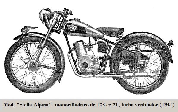La firma continuó sin su fundador lanzando la "Stella Alpina" de 123 cc, refrigerada por aire forzado, aunque interesante no tuvo ningún éxito comercial, pero se siguió fabricando hasta 1950; en aquel mismo año salió una nueva bicilíndrica de 492 cc con distribución ohc, esta sí fue un éxito.