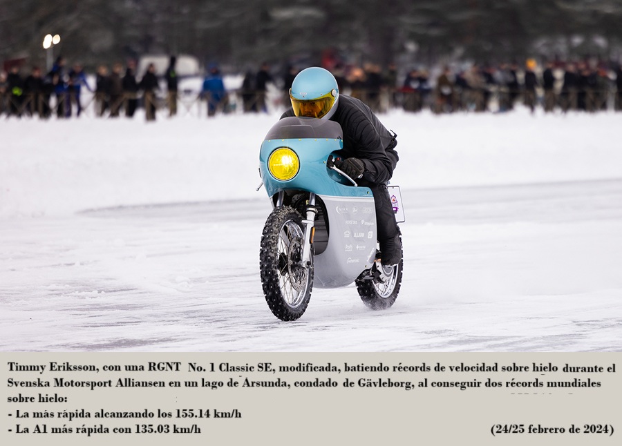 ¹ hizo historia al batir el actual récord mundial de velocidad sobre hielo con una motocicleta eléctrica. El ingeniero de RGNT, Timmy Eriksson, logró batir el récord durante el SMA