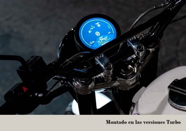 CBS (activado solamente por la palanca izquierda) con discos D/T ø 300 mm / ø 220 mm, tara 161.3 kg (incluida batería 60 kg), pantalla táctil LCD de 7″ con conectividad en la nube 4G GPS, marcha atrás, cada moto equipa un cargador estándar y dos modos de conducción: "Range" (80%) y "Power"(100 %), en las siguientes versiones:
