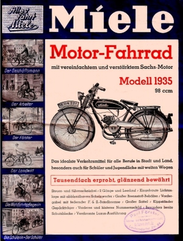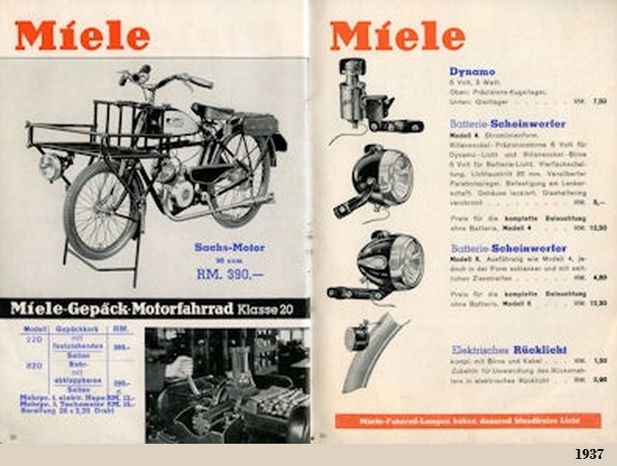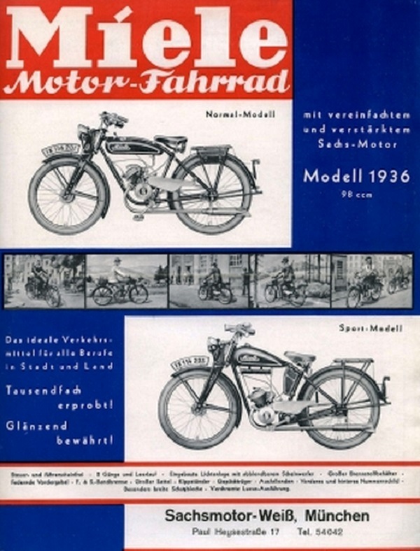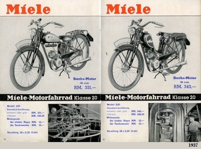 Tras el intervalo de la II Guerra Mundial, en 1953 reapareció como "Miele Werke AG Maschinenfabrik", tras su traslado a la población de Gütersloh, ya en el estado de Renania Septentrional-Westfalia situada a 17 km al sur de Bielefeld, pero fabricando ciclomotores de 48 cc y motocicletas ligeras con motores monocilíndricos SACHS de 98, 124 y 147 cc, todos ellos de 2T, hasta 1953.
