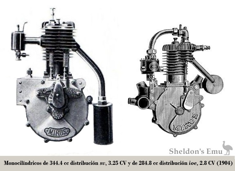 La capacidad de los mismos era de 284.78 cc (2.75 CV) y 344.06 cc de 3.25 CV, ambos con distribución ioe, mono marcha. montados debajo el cuadro, por delante del eje de los pedales, con transmisión trasera mediante correa, como en el caso de AIGLON y MOTO-BÉCANE (Paris).