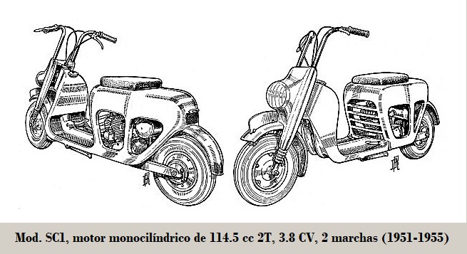 • Mod. S1C (basado en el SPEED: de 114.5 cc, 3.8 CV, 2 marchas, ruedas D/T 3.50 x 8", velocidad 60 km/h, tanque 7.0 L, consumo 2.5 L/100 km y peso 60 kg. 1951-1955.