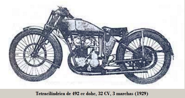Estos motores fueron montados a partir de 1927, en motocicletas de competición en versiones refrigeradas por aire de 490 cc dohc de 32 CV / 6 000 rpm, 3 marchas, compresión 6.1:1, equipado con freno de banda, obsoleto comparado con el motor; le siguió una versión refrigerada por agua / aire, con una potencia de 30.6 CV.