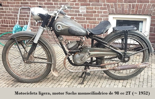 Utilizó motores SACHS de 98 cc 2T, de 2.5 CV, 2 marchas con transmisión final por cadena en las motocicletas ligeras.