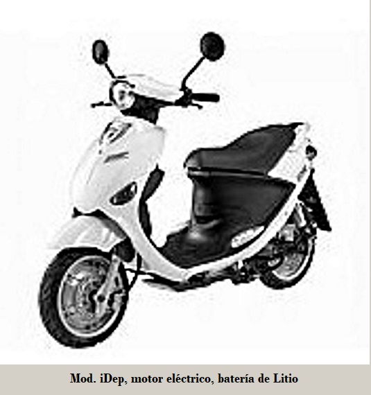 • iDep: motor eléctrico, batería de litio, suspensión D/T horquilla telescópica leading link / doble amortiguador ajustable, frenos de disco D/T 2 pistones / 2 pistones, neumáticos D/T 100 - 60-12" y 115 kg