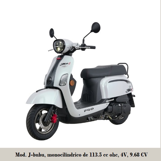 • J-bubu 115: de 113.5 cc 4V, 9.68 CV / 8 500 rpm, sistema ECU refrigerado por aceite, suspensión D/T horquilla trailing link telescópica / doble amortiguador ajustable, frenos de disco de doble pistón con CBS ABS D/T ø 180 / ø 165 mm, tanque 5.5 L y 100.5 kg