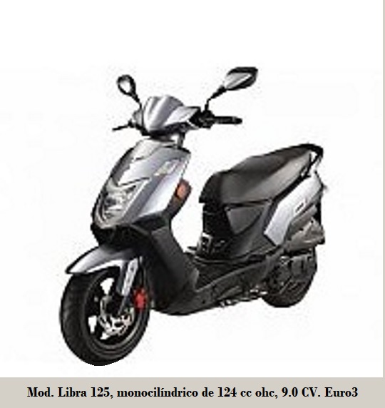 • Libra 125: de 124 cc, 9.0 CV / 8 250 rpm, Euro3, compresión 9.9:1, 118 kg; resto como el anterior. 2010