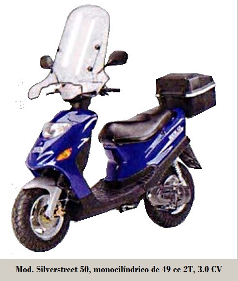 • Silverstreet: de 50 cc 2T, 3.0 CV, suspensión D/T horquilla telescópica trailing link / doble amortiguador ajustable. 2001.