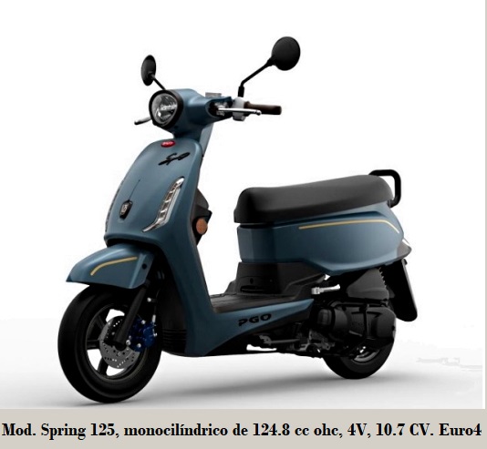 • Spring 125: de 124.8 cc 4V, 10.7 CV / 8 250 rpm, Euro4, compresión 10.1:1, refrigerado por aceite, inyección Bosch, suspensión D/T horquilla telescópica trailing link / doble amortiguador ajustable, frenos de disco con CBS y ABS D/T ø 180 / ø 165 mm, neumáticos D/T 90 - 90-10", tanque 5.5 L y 111 kg; luces Led, cargador USB QC 3.0 brinda plena potencia al teléfono móvil en cualquier momento.