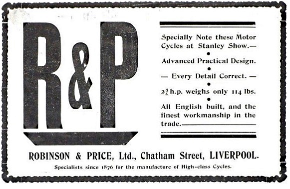 La "Robinson & Price Ltd.", con sede en Chatham Street, Liverpool, fue una de las firmas pioneras que defendieron la posición para el motor, denominada "Nuevo Método Werner", que iba situado dentro del cuadro de una bicicleta, sobre el eje de los pedales.