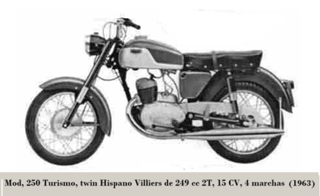 Todos ellos equipados con motores bicilíndricos HISPANO VILLIERS de 2T, 4 marchas, bastidor simple cuna, suspensión D/T horquilla telescópica / basculante con amortiguadores, llantas D/T 3.00 x 17"