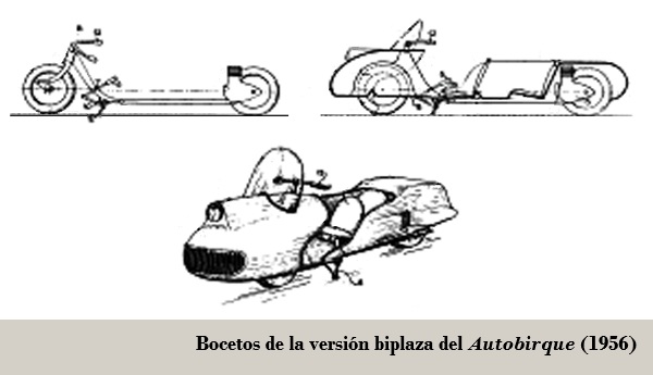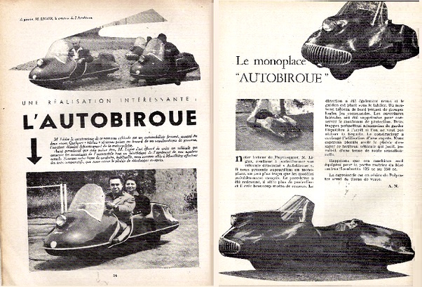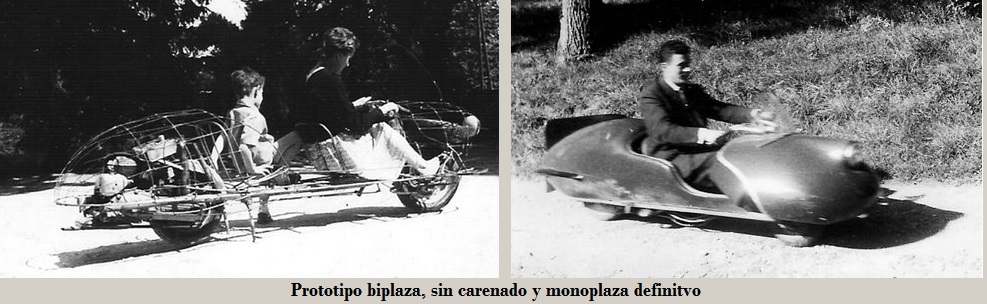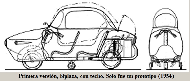El primer modelo (1954) fue únicamente un prototipo, de voiture à voie unique, biplaza, en tándem, totalmente carrozado incluido techo y puertas, con dos ruedas supletorias (plegables?) para mantener el equilibrio al circular a baja velocidad o al estar detenido.