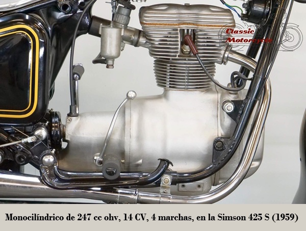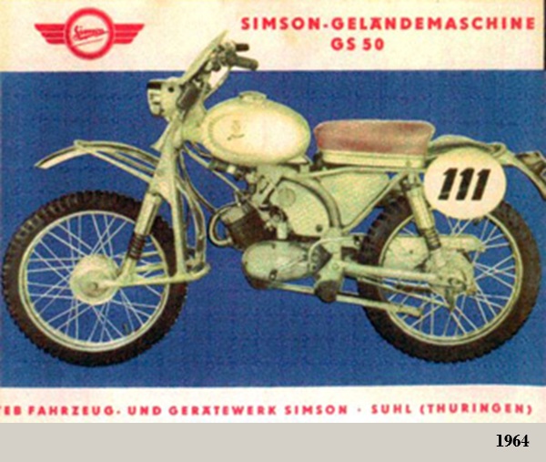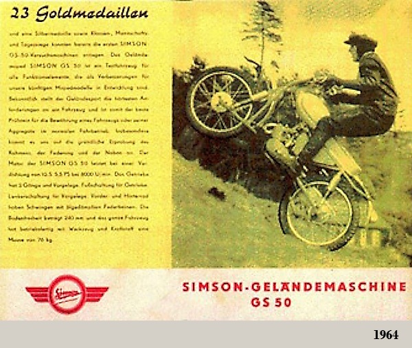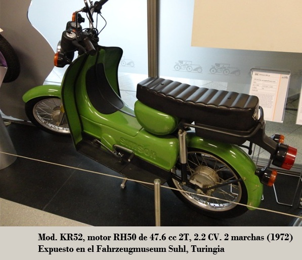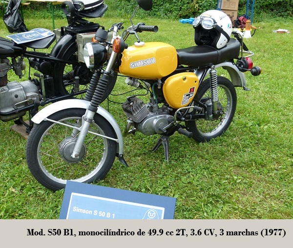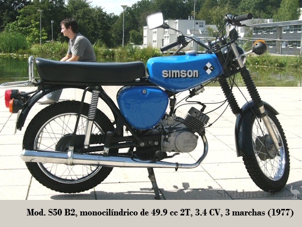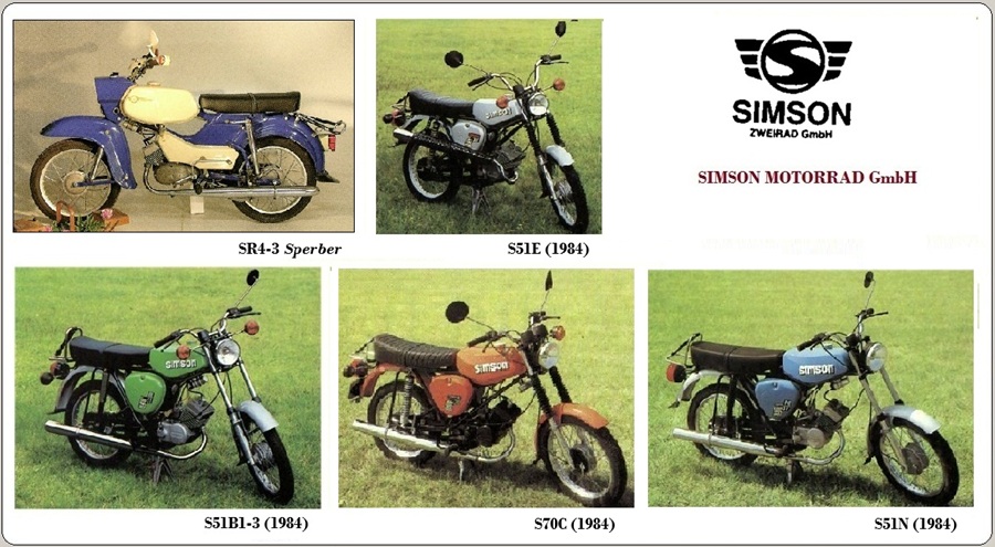 Posteriormente SIMSON abandonó los modelos de 4T, dedicándose solamente a cilindradas inferiores a los 100 cc, tanto para los ciclomotores (modelos SR1 / SR2 / KR50 (equipados con los motores Simson {Rh 50}) de 1.5 CV), escúteres como motocicletas ligeras.
