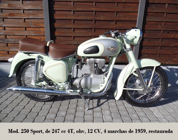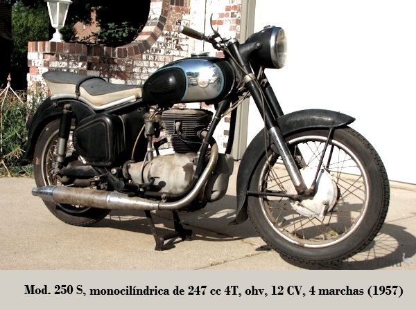 • S 250: monocilíndrico de 247 cc 4T, ohv, 12 CV, 4 marchas. 1957- 19??