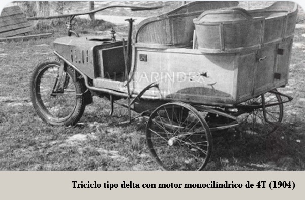 En 1904, iniciaron la fabricación de un vehículo de tres ruedas tipo delta equipándolo con un motor monocilíndrico de 4T, montado entre la rueda delantera y el asiento del conductor, él cual dirigía el vehículo mediante una caña-timón. Se trataba de un 4 plazas, equipado con suspensión trasera a base de ballestas elípticas y transmisión por cadena