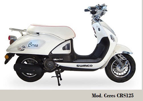 • Ceres CRS125: automático, embrague centrífugo el motor actúa como basculante, trasmisión CVT, tanque 5.0 L y 95 kg. 2013