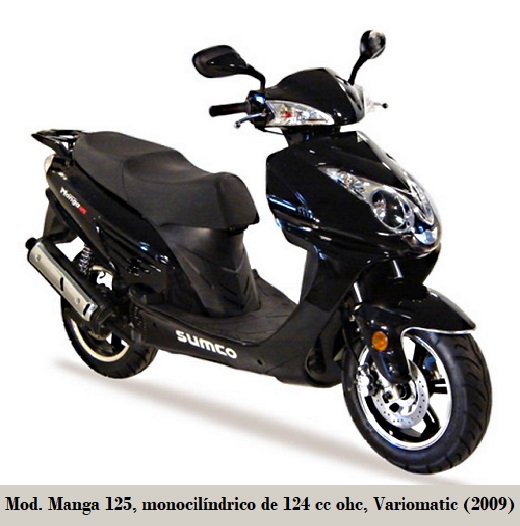 • Manga 125: de 9.0 CV, automático tipo Variomatic, suspensión D/T horquilla hidráulica / 2 amortiguadores hidráulicos, frenos de disco D/T ø 220 / ø 200 mm, neumáticos D/T 110 - 90-15" / 130 - 70-13", tanque 7.0 L y 106 kg. 2009