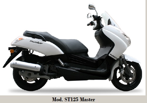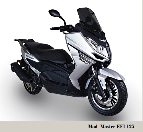 • Master EFI 125: de 8.5 CV / 8 000 rpm, encendido electrónico gestionado por ECU, arranque dual (eléctrico / kick starter), frenos de disco con CBS D/T, neumáticos D/T 120 - 80-14" / 130 - 60-13", batalla 1560 mm, tanque 14 L (consumo 2.8 L/100 km) y 140 kg.
