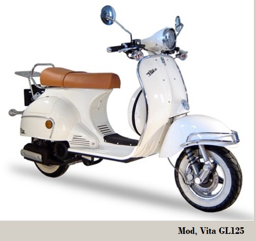 • Vita GL125: de 6.2 CV, automático con sistema Variomatic - el motor actúa como basculante - tanque 5.8 L y 98 kg. 2013-