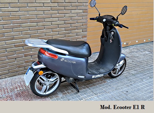 • Ecooter E1 R: potencia 4.0 kW, batería Samsung de litio 64 V / 30 Ah, tiempo de recarga 4.5-5.5 h, frenos de disco con
