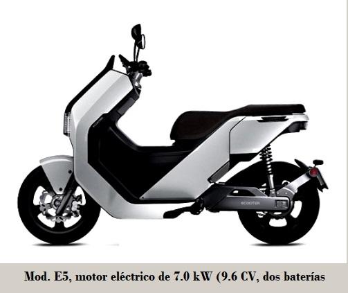 • Ecooter E5: potencia 7.0 kW (9.6 CV / 7 000 rpm), dos baterías -