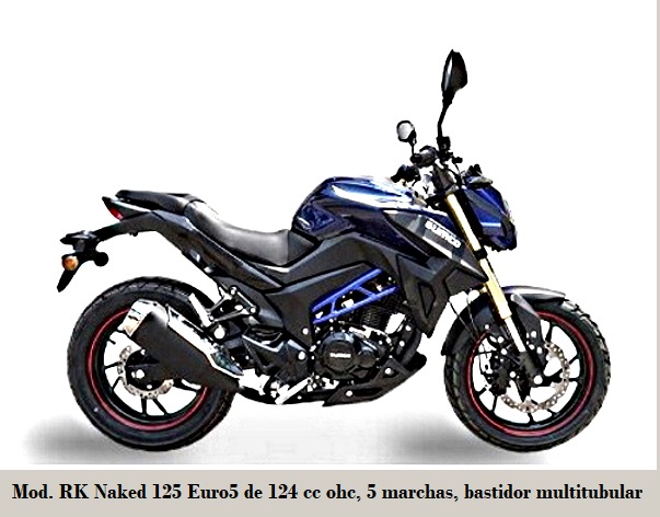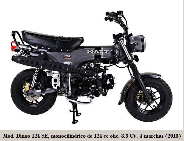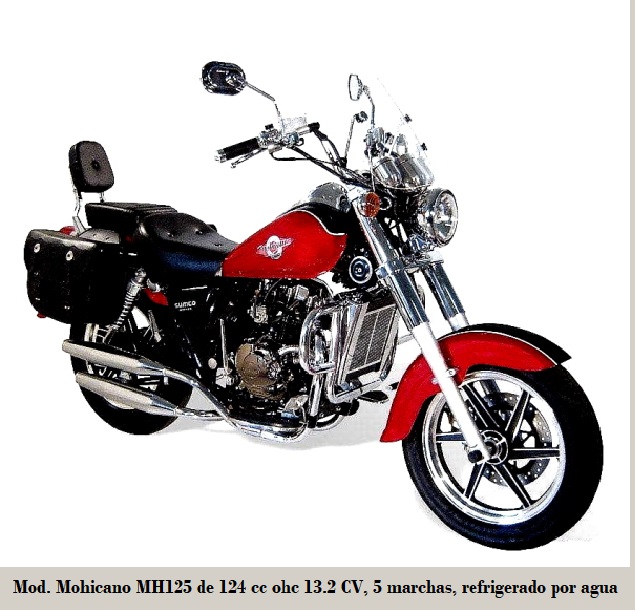 • Mohicano MH125: de 13.2 CV / 8 500 rpm, 5 marchas, compresión 9.0:1, refrigerada por agua, encendido
