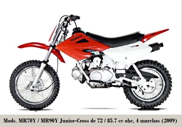 • MR70Y Junior-Cross 70: de 72 cc, (?) CV, 4 marchas, {bastidor monoviga}, suspensión D/T horquilla hidráulica ø 27 mm 180 mm recorrido /