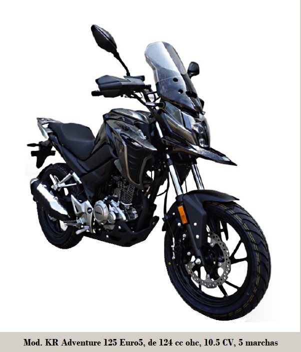 Euro 5: mismas características que la "KR Adventure", salvo {bastidor multitubular}, suspensión delantera con {horquilla invertida Paioli} con mayor recorrido, batalla 1370 mm y tanque 11 L y 133 kg de peso
