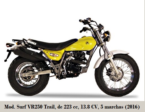 • Surf VR250 Trail: de 223 cc, 13.8 CV / 6 750 rpm, 125 kg; resto como la anterior. 2016