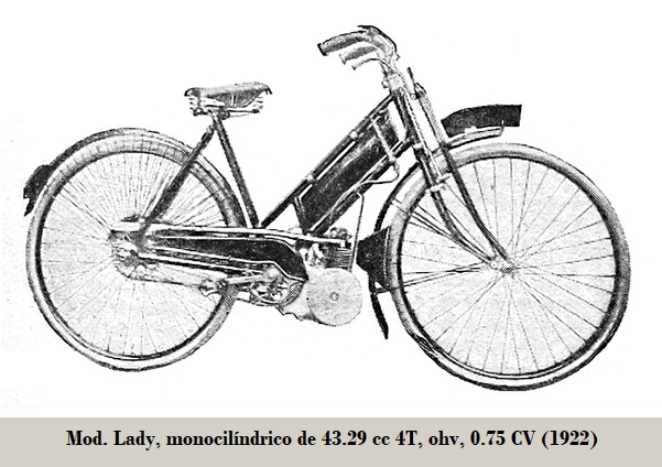 • Lady: horquilla Chater Lea, bastidor abierto, flat tank; rueda trasera con una malla que cubría la mitad superior de la misma para impedir que se introdujera la ropa femenina de la época (falda larga...)