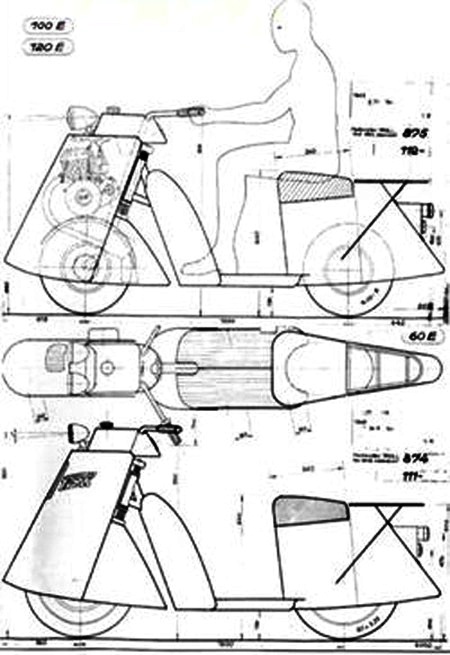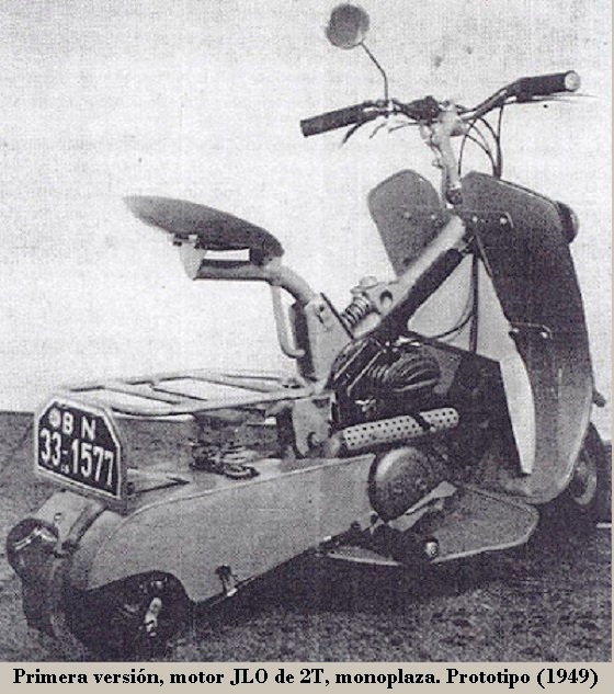 En 1950 apareció el modelo definitivo, biplaza, con el mismo motor montado sobre la rueda delantera con transmisión a la misma mediante cadena; todo el vehículo estaba carrozado.