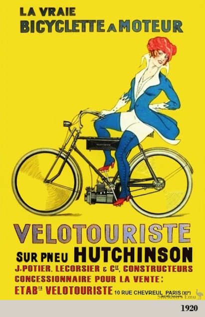La firma "Potier, Lecorsier & Cie., Constructeurs" (ver PAL), a través de los "Établissements Velotouriste", con sede en el 10 Rue Chevreul de Paris, en 1920 fueron los responsables de la producción de motores auxiliares monocilíndricos de 113 cc 2T, mono marcha, montado por debajo y delante del eje de los pedales de cualquier bicicleta, con transmisión secundaria por cadena a la rueda trasera...