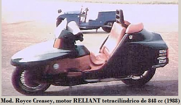 Equipada con un motor RELIANT tetracilíndrico de 848 cc, de 41 CV con caja de cambios y transmisión por eje cardán de MOTO GUZZI. Fue otro intento frustrado como el de QUASAR y PHASAR.