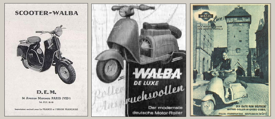 En 1949 se fundó la firma "Walba Fahrzeugbau", con sede en la Tübinger Straße 51 y luego en la Aulberstraße 1, de la misma población de Reutlingen, estado de Baden, fabricando escúteres con motores monocilíndricos JLO de 98, 118, 122 y 173 cc, todos de 2T equipados con neumáticos D/T 4.00 x 8".