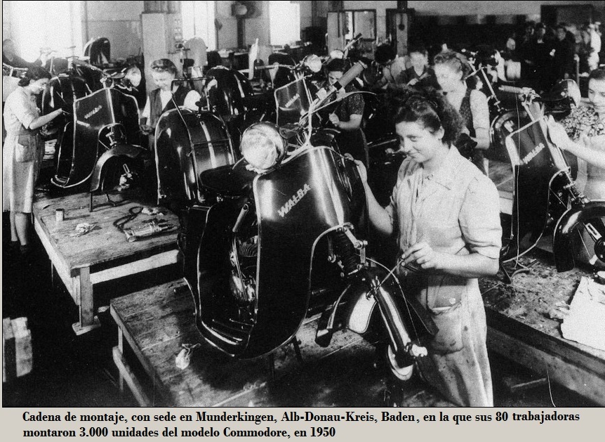 • Walba 100: motores FM100K de 98 cc, de 2.8, velocidad 60 km/h y 63 kg de peso. 1949-1951