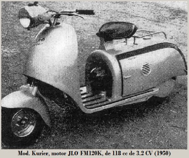 • Kurier: motor FM120K de 118 cc, de 3.2 CV, velocidad 60 km/h y 63 kg de peso. 1950-1952.