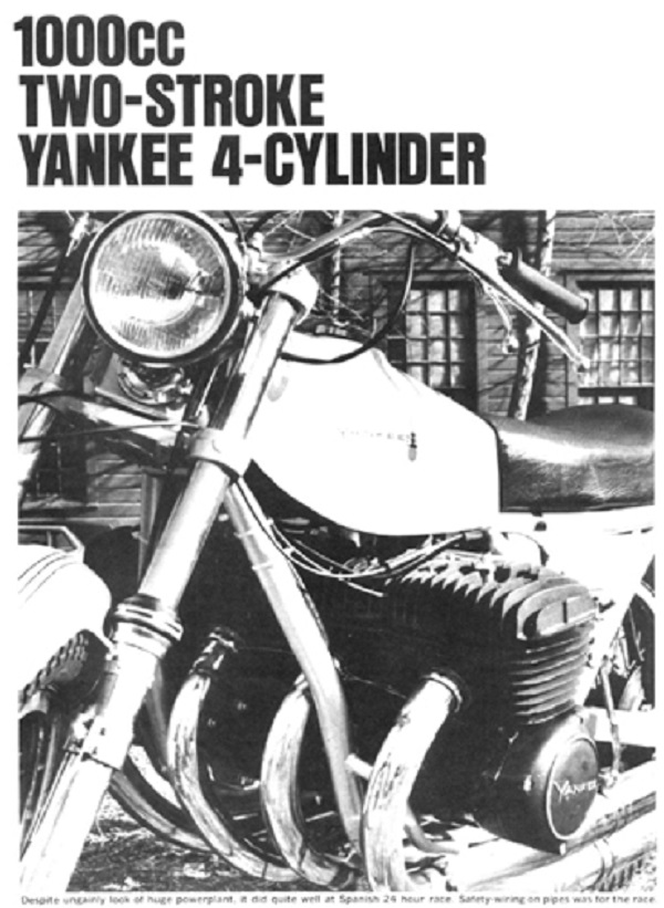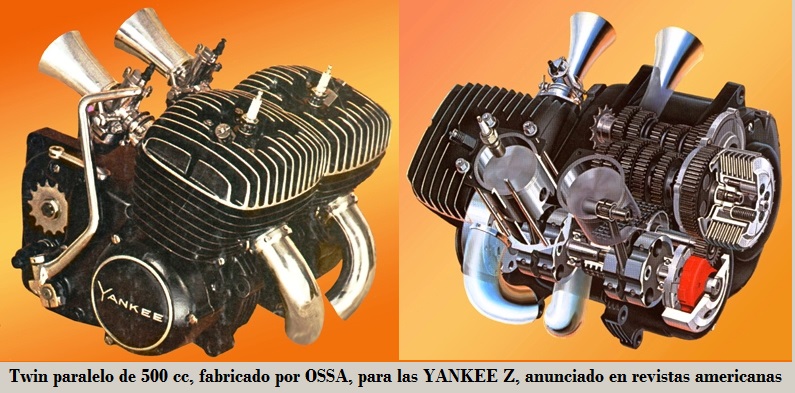 En OSSA nunca pensaron en fabricar ningún modelo que no fuera monocilíndrico pero en 1967 dijeron sí a una propuesta de los socios Frank Connera, John Taylor y Dick Mann que habían fundado la "Yankee Motor Corporation", con sede en P.O. BOX 36, Schenectady, Nueva York en 1966, y después que tanto en BULTACO como en MONTESA les dieran calabazas insistieron de nuevo en los despachos de OSSA hasta conseguir lo que anhelaban, el que una marca hispana les fabricara un motor "grande" para sus particulares carreras en los desiertos y toda clase de terrenos en Estados Unidos.