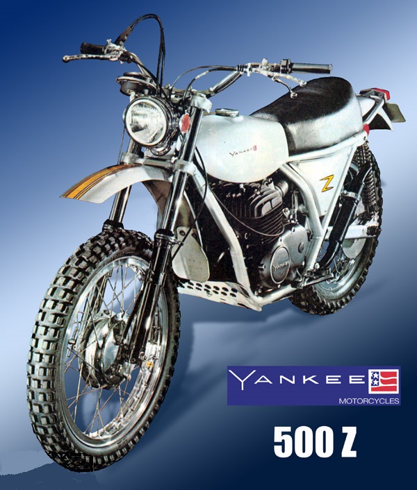 Hay que esperar hasta el año 1972 para que el aficionado americano pueda disponer, ahora ya sí en la tienda, la tan pregonada Yankee, en un único modelo de Todo Terreno denominada Yankee Z y con motor de 500 cc., se ha abandonado pues la imagen del prototipo Scrambler y Moto Cross por el "Z" , así como la de 460 cc. El freno trasero lleva un disco en lugar del de tambor y salen los dos escapes a ambos lados, quizás los más ineficaces y feos tubos de escape que se hayan visto nunca en una motocicleta, llamémosle, moderna. La Yankee Z 500 estará en las tiendas solamente dos años, ya que en 1974 quebró la empresa.